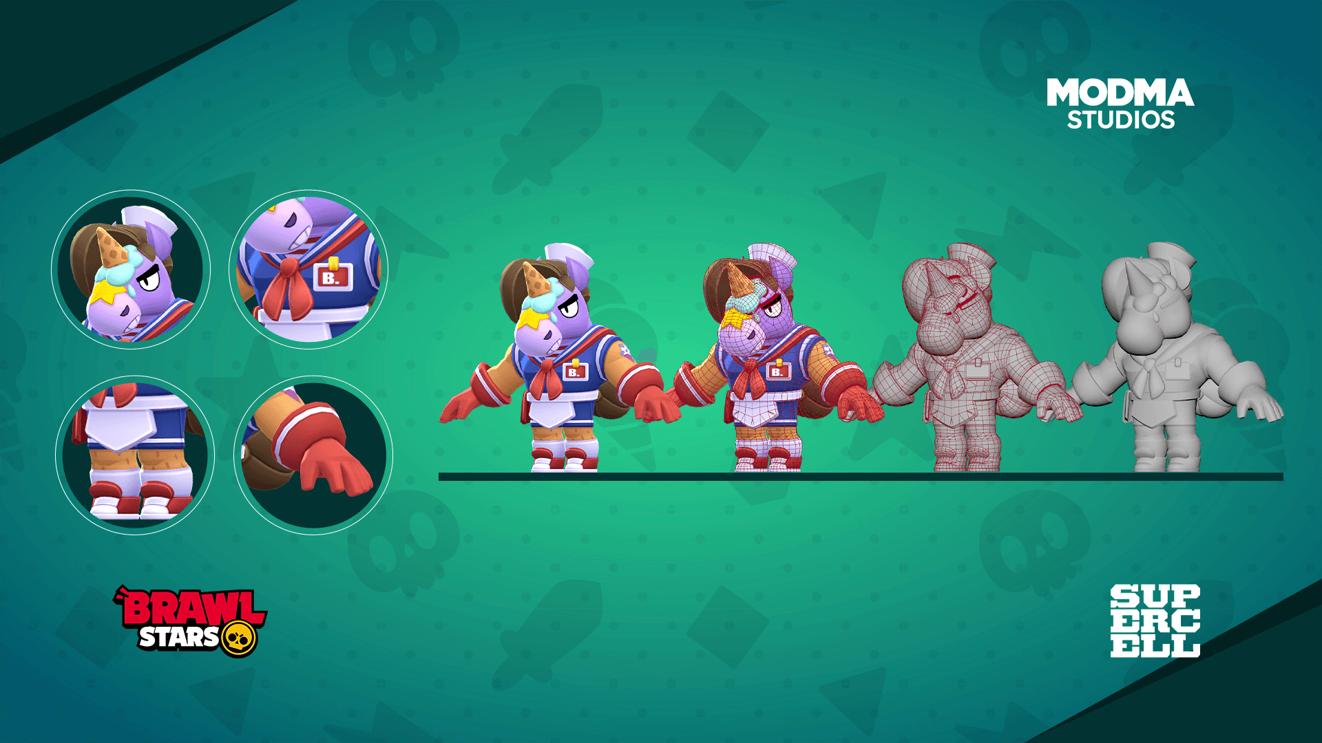 Since 2019, Modma Studios has partnered with Supercell to support the live production of Brawl Stars. What began with a small batch of stylized 3D character skins evolved into a long-term collaboration spanning art production, implementation support, QA, and scalable live game operations.